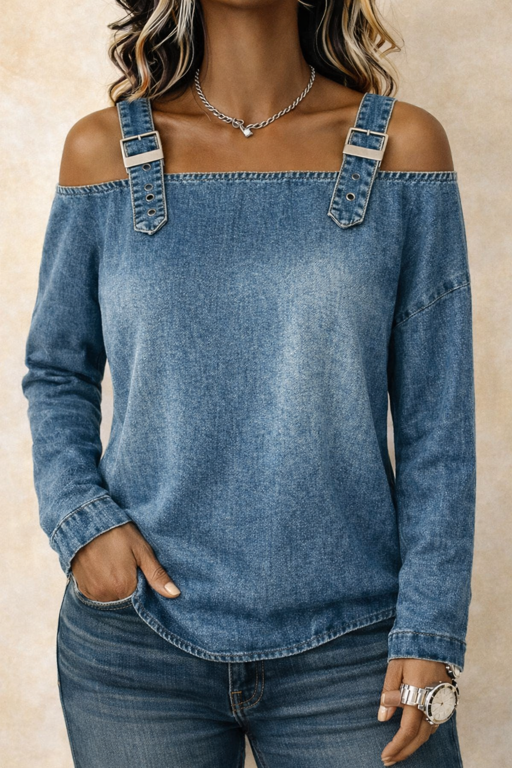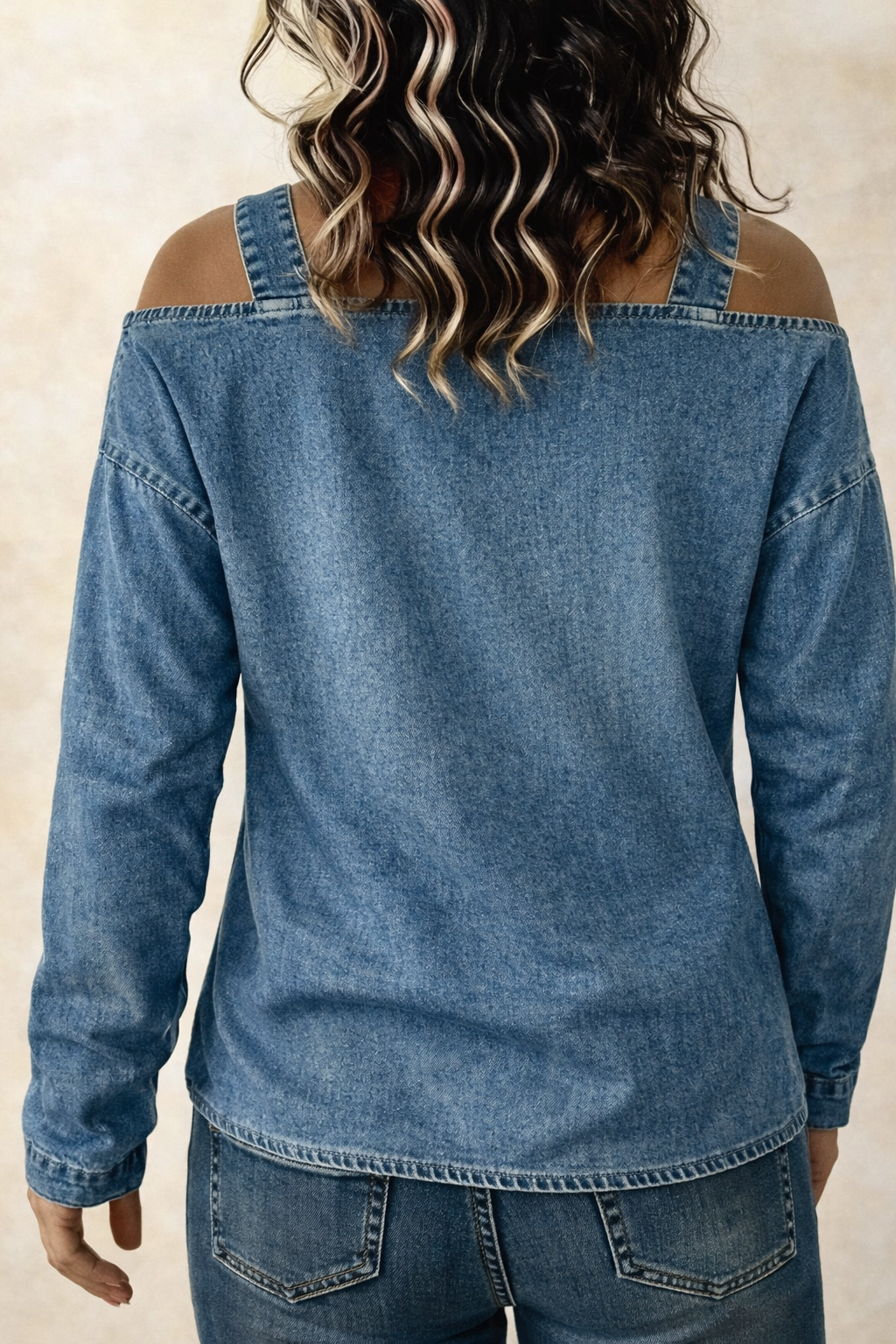 The Aurélie Off-Shoulder Denim Blouse is designed to make styling easy while keeping your outfit chic and comfortable. The breathable denim fabric feels soft on the skin while the off-shoulder neckline adds a modern and elegant touch.
