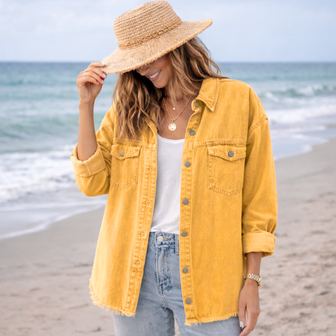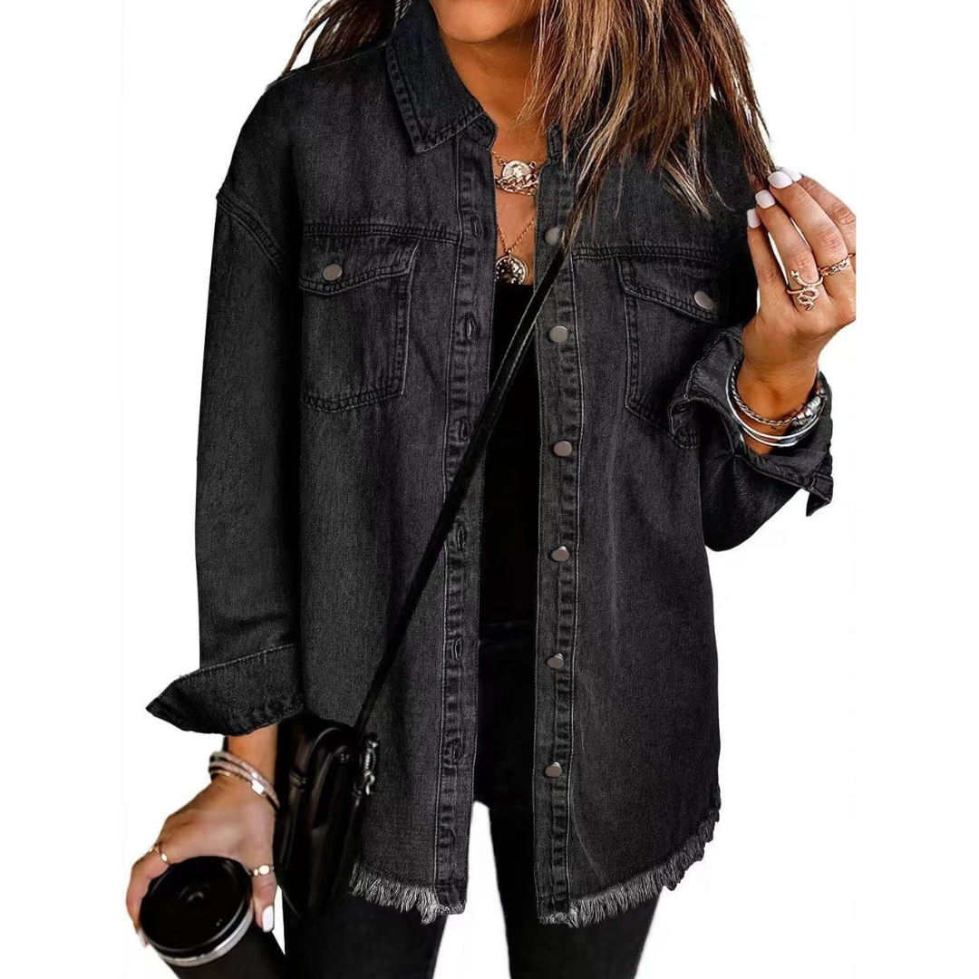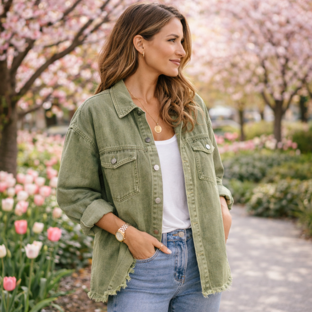 The Clara Denim Jacket is designed for those who want a go-to piece that never goes out of style. Its relaxed silhouette creates a laid-back yet polished look that works in every season.
